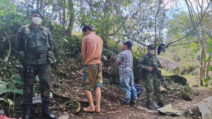 Los Soldados del Batallón de Infantería n. 16 Patriotas de la Sexta Brigada del Ejército Nacional, con apoyo interinstitucional de la Policía Tolima, lograron la captura de dos sujetos en la vereda Espejo del municipio de Fresno, quienes venían realizando graves afectaciones ambientales con la extracción Ilícita de yacimientos mineros de oro de socavon sin contar con un título minero, tampoco con el instrumento técnico ambiental y licencia ambiental.