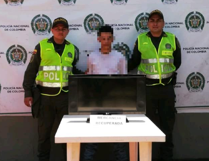 Cuando los hombres del cuadrante consiguieron detener al hombre de 26 años de edad, se le descubrió en su poder un televisor de 32 pulgadas y de color negro, avaluado en $599.000, el cual era el mismo que había desaparecido minutos atrás en la casa del barrio anteriormente señalado.