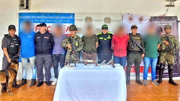 Los capturados fueron puestos a disposición de la Fiscalía por los delitos de concierto para delinquir, homicidio, extorsión y tráfico, fabricación o porte de armas de fuego.
