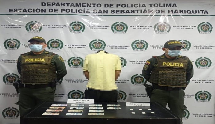 Luego de descubrir la cocaína, las unidades policiales procedieron a incautar el alucinógeno, seguidamente se capturó al señalado microtraficante, quien fue dejado a disposición de la autoridad judicial y Fiscalía 36 seccional de Honda por el delito de tráfico, fabricación o porte de estupefacientes.