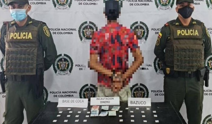 Según la Policía Tolima a esta persona al momento de realizarle registro e identificación a persona, le fueron halladas 14 bolsas plásticas con 70 gramos de bazuco y 14 bolsas plásticas con 80 gramos de clorhidrato de cocaína.