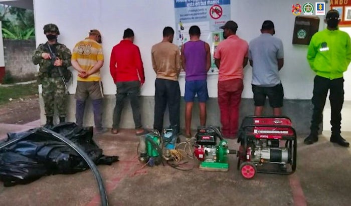 Ese día se logró la incautación de una planta eléctrica, una motobomba sumergible y dos dragas que estaban siendo usadas para ejercer la actividad ilícita. Los detenidos fueron dejados en libertad, pero vinculados al proceso hasta hoy que se logra su imputación.