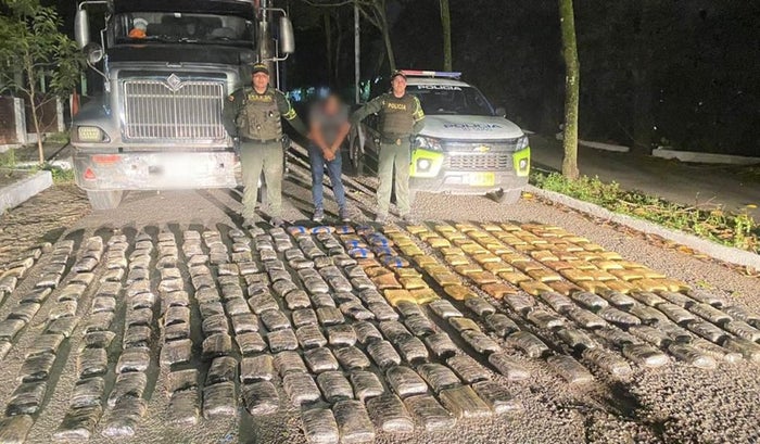 El hecho se presentó sobre las 05:10 de la mañana, mediante una actividad de control y registro en el kilómetro 65 vía Ibagué – Mariquita jurisdicción del municipio de Lérida, lugar donde los uniformados interceptan a un sujeto conocido como “Excehomo” de 53 años, quien se movilizaba en un tracto camión, donde al momento de realizarle registro e identificación a persona y al automotor, se halló mediante la modalidad tipo caleta, en el tráiler y debajo de la carpa, sobre la carrocería un total de 282 paquetes rectangulares envueltos en material plástico de color negro y beige con un peso de 141 kilos de marihuana, representados en más de 320 mil dosis, avaluados en cerca de $90.000.000.