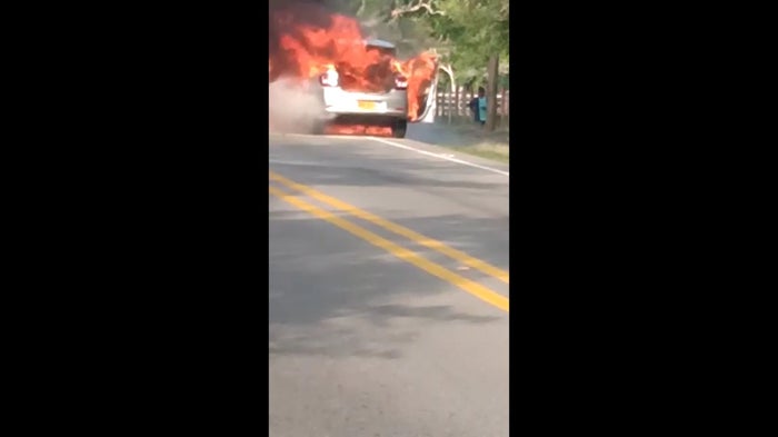 En cuestión de minutos el carro pasó de echar humo desde su interior a incendiarse por completo. Frente a los ojos de su conductor el fuego se esparció por todo el interior del rodante y las flamas anaranjadas se apoderaron de cada rincón del automotor, elevándose en el cielo una columna de humo negro visible a varios kilómetros.