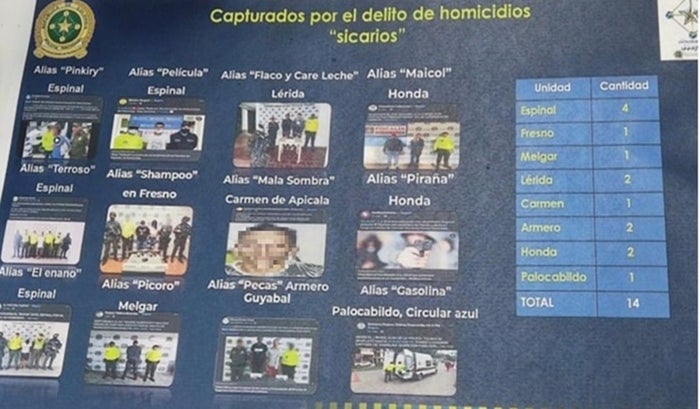 En los últimos meses, 14 despiadados sicarios han sido capturados en el Tolima