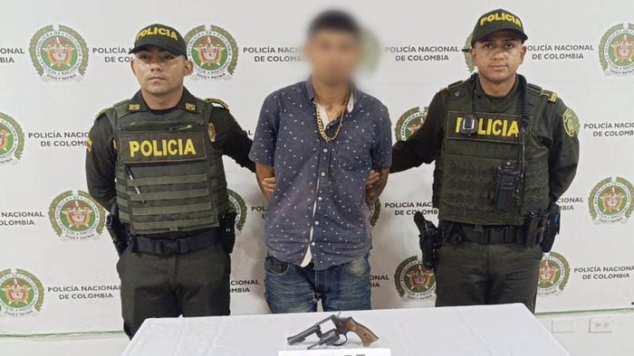 Según relató la Capitán Adriana Angélica Sánchez Pinzón, comandante del Distrito de Policía Honda, "el sujeto intentó huir, pero fue interceptado de inmediato por los uniformados". Durante el registro, se le encontró en la parte baja de la bota del pantalón un arma de fuego tipo revólver calibre 38 mm, la cual no contaba con permiso para porte o tenencia.