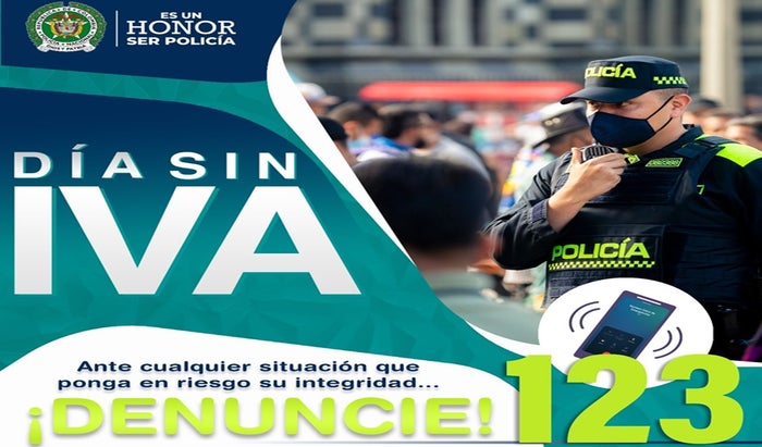 Según el coronel Néstor Cepeda, comandante Detol, "Teniendo en cuenta que el día 28 de octubre el país tendrá el “Día sin IVA, "El departamento de Policía Tolima desplegará la totalidad de los uniformados de diferentes especialidades y cuadrantes en todo el territorio para garantizar la seguridad y convivencia de los tolimenses".