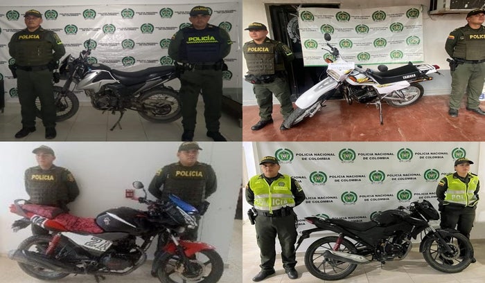 La Policía Tolima con su personal de la unidad básica de investigación criminal Sijin y personal de los cuadrantes de Policía de Suarez, Ortega, Saldaña y Cunday, lograron la recuperación de cuatro motocicletas, en diferentes procedimientos.