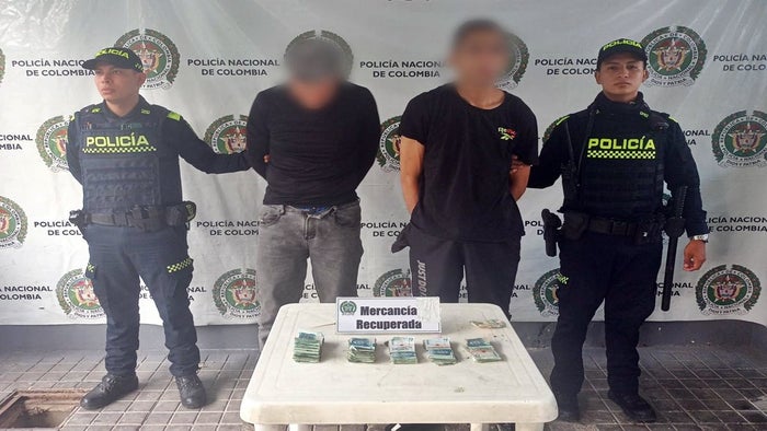 Según el coronel Fabio Ojeda, comandante Detol, "La policía en Melgar logró la captura de dos sujetos al parecer provenientes de la ciudad de Bogotá, así como la recuperación de dinero en efectivo", manifestó.