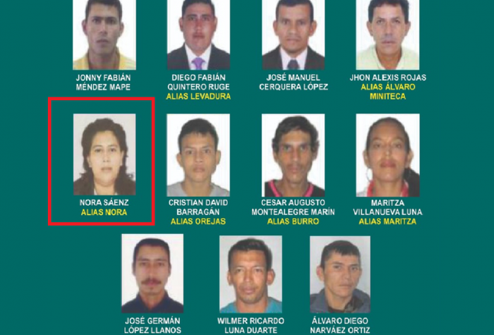 Se trata de Nora Sáenz, alias 'Nora', quién fue detenida y presentada a estrados judiciales, luego que por medio de una llamada telefónica se diera aviso que la mujer se encontraba en el municipio de Natagaima.