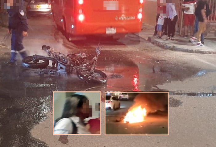Se pudo establecer que la mujer tomó velocidad para luego sorprender a los sujetos, colisionándolos tan fuerte que cayeron y la motocicleta de los delincuentes comenzó a prenderse en llamas, ante la mirada atónita de la gente y la admiración de algunos que decían, “mire no se dejó robar”.