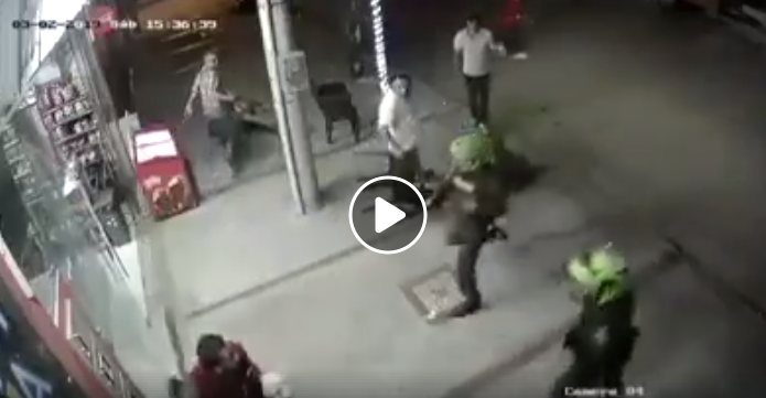 En vídeo quedó registrado el momento exacto en el que dos patrulleros de la Policía del Tolima, adscritos a la estación de Policía del municipio de Carmen de Apicalá detienen a un hombre que se encontraba alterando el orden publico y al momento de ser requerido por las autoridades este desenfunda un machete e intenta agredirlos con esta arma blanca.