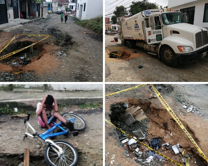 Es más, hasta los carros recolectores de basura de Interaseo han quedado atrapados luego que lo poco que queda de la vía se trague las llantas del rodante por culpa de la inestabilidad del Terreno.
