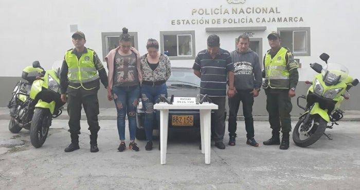 Por lo anterior, el vehículo, las dos armas de fuego y las cuatro personas capturadas fueron dejadas a disposición de la Fiscalía local 43 de Cajamarca, para que respondan por el delito de porte ilegal de armas de fuego.