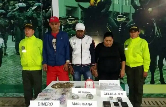 De este modo los capturados identificados como Luis Álvaro Castillo alias El Negro, Arley Bernal Ortega alias Donald y Adriana Pulido Avilés alias La Mona, fueron presentados ante un Juez con Función de Control de Garantías quien envío a dos de ellos a Picaleña y al tercero con prisión domiciliaria.