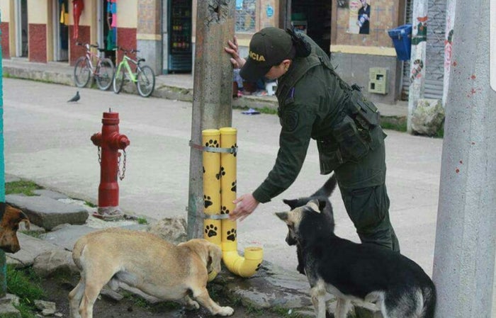 Desde este fin de semana los perros callejeros del municipio de Murillo disponen de comedores comunitarios en donde pueden calmar el hambre y la sed, gracias al esfuerzo e iniciativa de la Patrullera Ana María Castillo Gutiérrez en compañía del Patrullero Óscar Mauricio Flórez, quienes son integrantes de la estación de Policía de esa población. Le sugerimos leer: “Denunciamos en varias ocasiones que el mayor cartel de narcotráfico eran las Farc”: Milton Restrepo Según lo conocido por Rubéndariocorrea.com, estos uniformados tenían que atender las constantes quejas de la ciudadanía, por la basura que regaban los caninos al romper las bolsas mientras intentaban encontrar algo de comer. Es así como se da la iniciativa para fabricar los comedores portátiles para perros, fabricados en forma de contenedores plásticos, realizados con dos tubos de PVC, protegiendo el agua y los alimentos del sol y la lluvia, logrando contener al menos 5 kilos de concentrado para los peludos. Le sugerimos leer: Concejo de Villarrica deberá aprobar ampliación del EOT para realizar reubicación de familias afectadas Al momento se ha instalado el primer dispensador en el parque principal del municipio, donde cerca de 20 perros callejeros llegaron al sitio a tomar sus alimentos, siendo de gran acogida esta iniciativa de tal manera que ya están en proceso de construcción otros dispensadores. Le sugerimos leer: Asamblea del Tolima podría ser convocada sesiones extraordinarias De éste modo se espera que localidades vecinas tomen el ejemplo para mitigar el sufrimiento de los perritos sin hogar en esa zona del departamento. También le puede interesar: