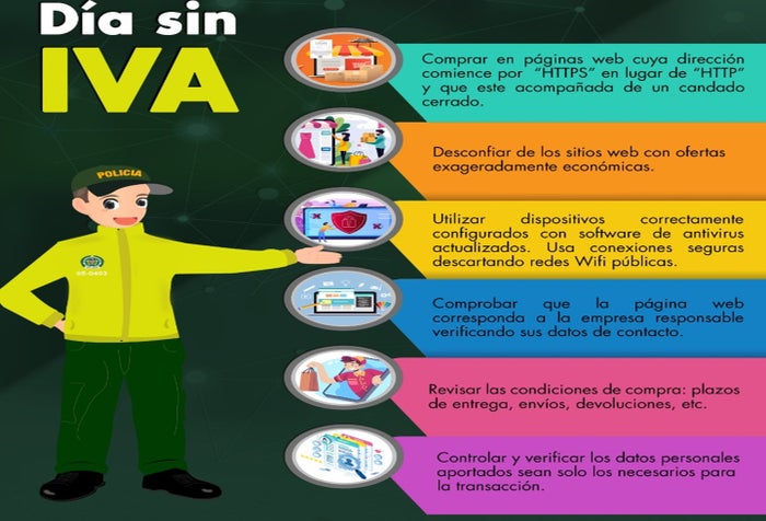 La información la entregó el propio comandante de la Policía en el Tolima, coronel Rodolfo Carrero, quien indicó que “Teniendo en cuenta que hoy nuevamente el país tendrá el día sin IVA es por esto que en los diferentes municipios del Tolima desde ya se refuerza la seguridad y acompañamos a los ciudadanos con uniformados de los cuadrantes y personal de diferentes especialidades en almacenes, supermercados y lugares de acopio, con el fin de que este día transcurra en calma y tranquilidad”, señaló.