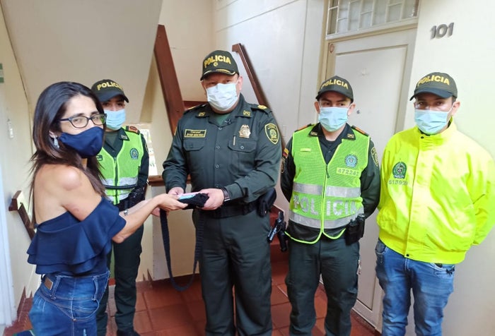 Hasta la casa de la comunicadora Paola Martínez llegó el comandante de la Policía Metropolitana de Ibagué, coronel Jovani Benavides, quien entregó los dos celulares avaluados en más de 6 millones de pesos, que un sujeto en horas de la mañana le había robado, después de arrastrarla y generarle algunos raspones en la acción delictiva.