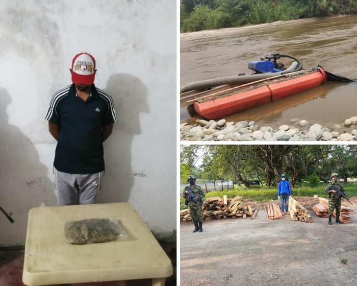 Por otro lado, tropas del Cozeus de la Sexta Brigada del Ejército Nacional capturaron a un sujeto en la vereda Mesa de Pole del municipio de Ataco, quien al momento de efectuar su verificación, se logra evidenciar que llevaba en sus cosas personales una bolsa que en su interior contenían una sustancia vegetal de color verde las cuales por su olor y característica se asemeja a la marihuana para un total de 492 gramos, mencionada persona es puesta a disposición de las autoridades competentes por el delito de porte, tráfico y fabricación de estupefacientes.