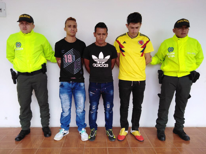 Los capturados responden a los nombres de Jabinson Andres Prieto Méndez, Alias Chelo, y Víctor Alfonzo Rojas campos, Alias el Mono, quienes están sindicados por el delito de Hurto calificado y agravado, fabricación, tráfico o porte de armas de fuego o municiones, en hechos criminales en hurtos en carretera, más propiamente en el trayecto Chaparral – Rioblanco.