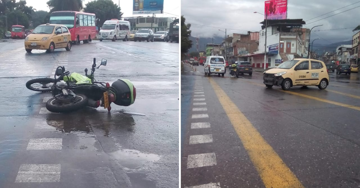 El taxi, identificado con el número interno 01004 y la placa TGT 227 chocó con su parte frontal a la moto de la METIB de número de registro RTR 15D, la cual quedó tendida en el pavimento sobre el área azul que demarca la ciclo ruta que sube por la avenida ferrocarril.