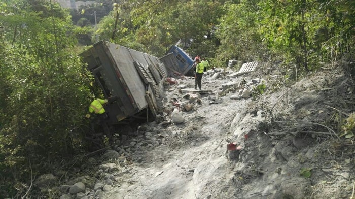 El delicado accidente de tránsito se registró esta mañana en el kilómetro 11 más 800 metros de la vía Ibagué - Espinal, sector del Alto de Gualanday, donde un vehículo de carga pesada tipo tracto camión adscrito a la empresa Cemex se salió de la carretera, rodando varios metros hasta quedar volcado entre la vegetación.