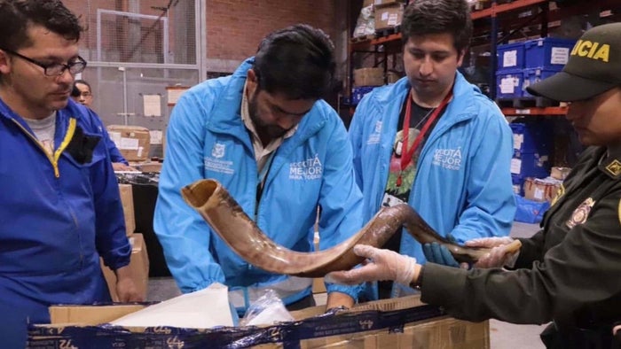 Según se pudo establecer, el cuerno de antílope venía procedente de Asia, con destino a la capital musical de Colombia, para ser usado, al parecer, en la elaboración de artesanías, sin embargo, gracias a los operativos adelantados por la Secretaría de Ambiente y la Policía Ambiental y ecológica se pudo incautar este cuerno.