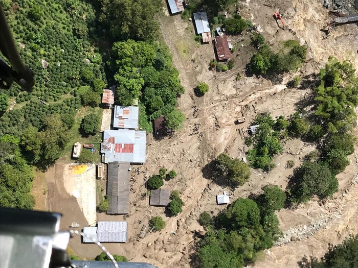 A esta hora de la tarde llegan al sector de La Virginia, en el Cañón de Las Hermosas dos helicópteros Huey 2 y un Bell 212 los cuales buscan realizar labores de sobrevuelo y rescate de las personas heridas en medio de esta tragedia.