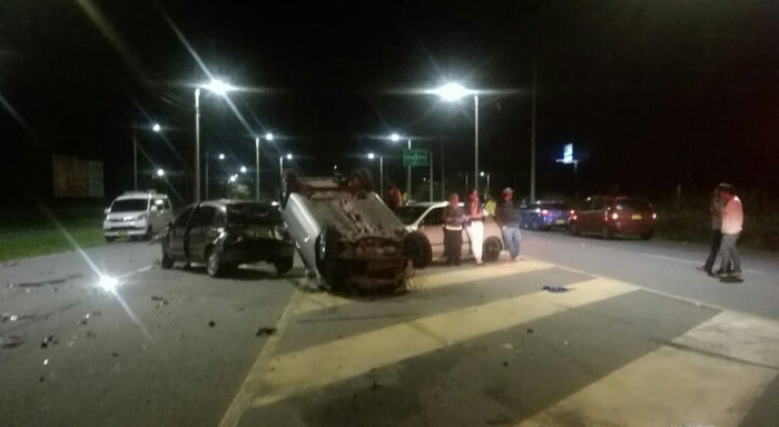 El hecho se habría registrado sobre la 1 de la mañana en la vía tipo doble calzada que conduce desde la avenida Pedro Tafur hacía el Aeropuerto Perales, donde integrantes de la seccional de Tránsito y Transporte tuvieron que atender la colisión entre tres vehículos, momentos en los que uno de éstos se desplazaba con un aparente exceso de velocidad.