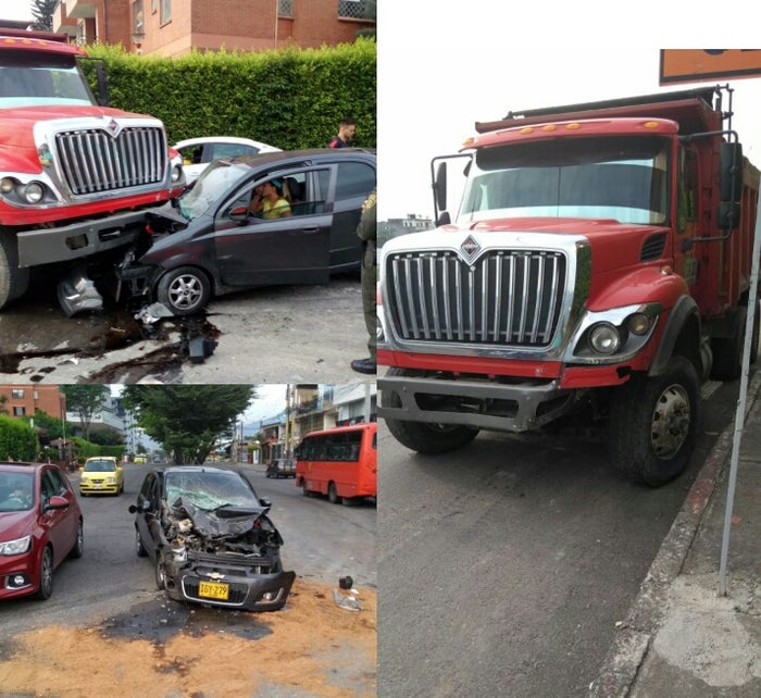 La falta de precaución del conductor de un vehículo de carga pesada tipo volqueta doble troque que salió de la calle hacia la avenida Guabinal, causó esta mañana la colisión contra un automóvil Chevrolet Spark Life, en el cual se movilizaba una mujer.