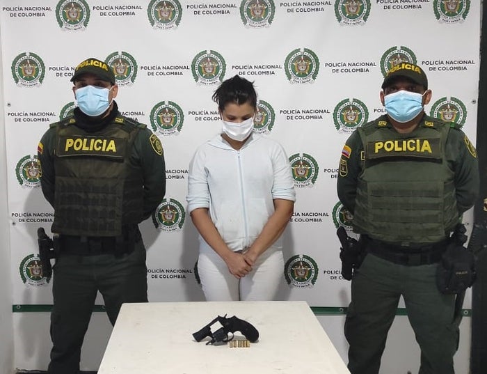 El arma incautada es un arma de fuego traumática, tipo revolver, con seis cartuchos, la cual fue dejada a disposición de la Fiscalía General de la Nación, junto con la mujer capturada.