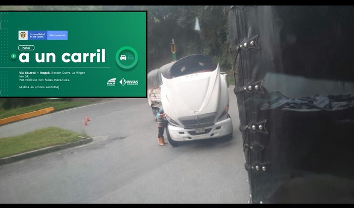 A esta hora se registra paso restringido a un carril en la vía que lleva de Ibagué al alto de La Línea, por causa de un vehículo de carga pesada que quedó atravesado en la calzada vial después de experimentar fallas mecánicas.