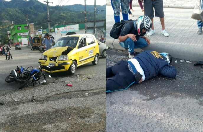 Información conocida por esta redacción indica que el vehículo taxi de placas SMR-223 realizó un giro a la izquierda, impactando con el hombre de la moto de placa NNJ-60E quien se movilizaba con dirección al norte de Ibagué.