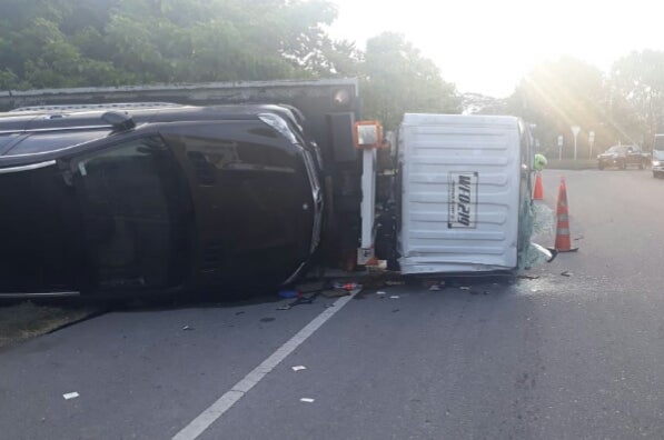 El hecho accidental se presentó esta mañana en la doble calzada que une a la ciudad de Ibagué con el peaje de Gualanday, donde un vehículo tipo grúa terminó volcado lateralmente al tomar la curva de una glorieta, mientras remolcaba una camioneta negra de alta gama.