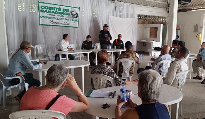 En los municipios de Guamo y Purificación se dieron cita ganaderos y miembros del Gaula de la Policía Tolima y en desarrollo a la estrategia integral contra la extorsión enfocada en la protección de los ganaderos, el departamento de Policía Tolima, a través de su grupo de prevención del Gaula, ha venido llevando a cabo una serie de actividades preventivas con este gremio de los municipios de Guamo y Purificación.