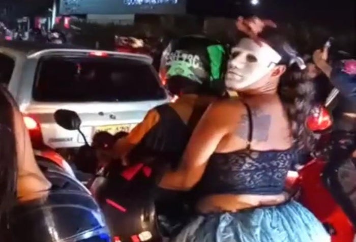 La caravana de halloween que tenían programada algunos motociclistas para este viernes, la adelantaron ayer y su punto de encuentro fue en la bahía de los Arrayanes. Los motociclistas estaban citados para las 8:30 de la noche, indicando que arrancaban a las 9 de la noche y “el que se quedaba, se quedaba”.