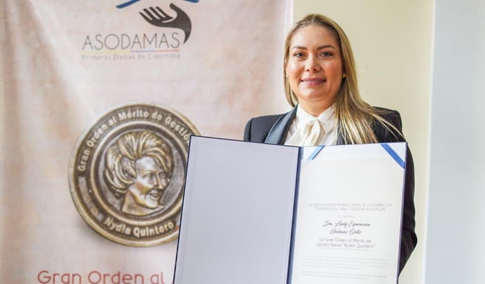 La Asociación de Primeras Damas de Colombia (Asodamas) y la Comisión Legal para la Equidad de la Mujer, le otorgaron a la Gestora Social de Ibagué, capital del departamento del Tolima, Leidy Galeano Ortiz, el reconocimiento Gran Orden al Mérito de Gestión Social ‘Nydia Quintero’ en el Congreso de la República.
