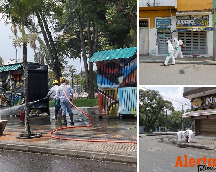 Alerta Tolima Ibagué Limpia está desinfectando los parques, plazas y calles del centro de la ciudad