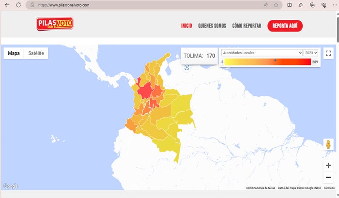 El portal www.pilasconelvoto.com está disponible las 24 horas del día, los 7 días de la semana. Para reportar una irregularidad, los ciudadanos deben ingresar al portal y completar un formulario con la siguiente información: