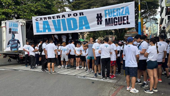 Grandes y chicos, así como familias enteras se sumaron este domingo en la ciudad de Ibagué a la 'Carrera por la vida', un recorrido deportivo simbólico para elevar plegarias por la salud del senador Miguel Uribe Turbay, quien completa cerca de un mes hospitalizado tras un atentado con arma de fuego del que fue víctima.