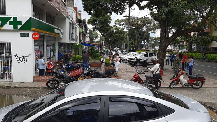 Una de las situaciones se observó esta mañana en inmediaciones de una reconocida droguería en el sector de la carrera Quinta entre calles 30 y 31, observándose a muchas personas violando el uso obligatorio de tapabocas y otros elementos de protección.