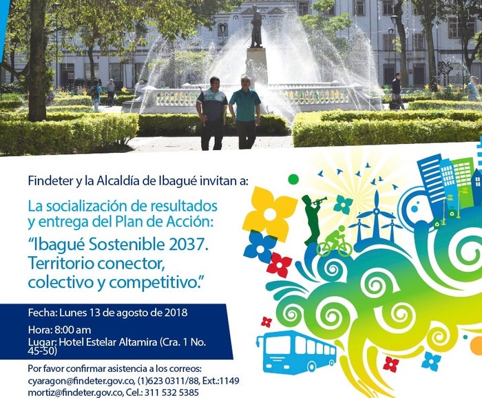 El lunes 13 de agosto, la Financiera de Desarrollo Territorial, FINDETER, y la Alcaldía Municipal socializarán los resultados del plan de acción “Ibagué sostenible 2037. Territorio conector, colectivo y competivo”. El evento se realizará en el hotel Estelar Altamira a las 8:00 de la mañana.