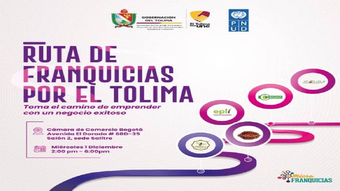 La Gobernación del Tolima y el PNUD, realizarán este miércoles 1 de diciembre, una jornada completa con franquiciantes del departamento que deseen ofrecer estos modelos de negocio a empresarios de otras ciudades.