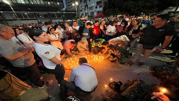 “En esta gran velatón que hacemos en Ibagué queremos expresarles a estas familias de los hombres toda nuestra solidaridad, sentimos el dolor que sienten en estos momentos. Se fueron sirviéndole a la patria, con su deber, así se fueron estos hombres del ejército, la policía y la fuerza aeroespacial”, indicó la gobernadora del Tolima, Adriana Magali Matiz.