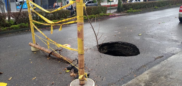 Los habitantes del Barrio Calarcá muy preocupados por grandísimo hueco que puede causar tragedia