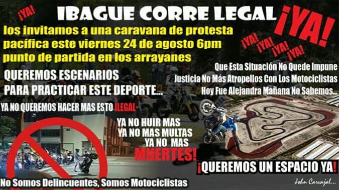 La movilización esta motivada por los hechos que ocurrieron el pasado fin de semana, donde falleció la joven Alejandra Ruiz quien trataba de escapar junto a su novio de una redada de la Policía, momentos en los que observaban el desarrollo de los denominados piques ilegales por la variante de la ciudad de Ibagué.