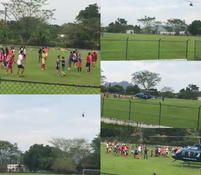 En el vídeo se observa cuando un grupo de menores está adelantando actividades deportivas en la grama de una cancha de fútbol ubicada en esa población, cuando de un momento a otro son alertados del posible aterrizaje de una aeronave en el lugar. Sin tener total certeza de la maniobra del piloto, los niños y niñas esperan algunos segundos de forma expectante hasta que se percatan que el helicóptero efectivamente va a descender en el sitio.