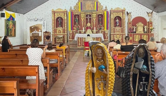 Un nuevo y preocupante hecho ha generado conmoción entre los feligreses y la comunidad católica de la capital tolimense. La iglesia del barrio Piedrapintada fue escenario de un acto considerado como una falta grave de respeto hacia los espacios sagrados y las creencias religiosas: en la capilla de oración, una persona no identificada dejó abandonado un maletín negro con imágenes cerámicas alusivas a figuras oscuras y elementos relacionados con cultos satánicos, muy al estilo de ciertas representaciones mexicanas de la muerte.