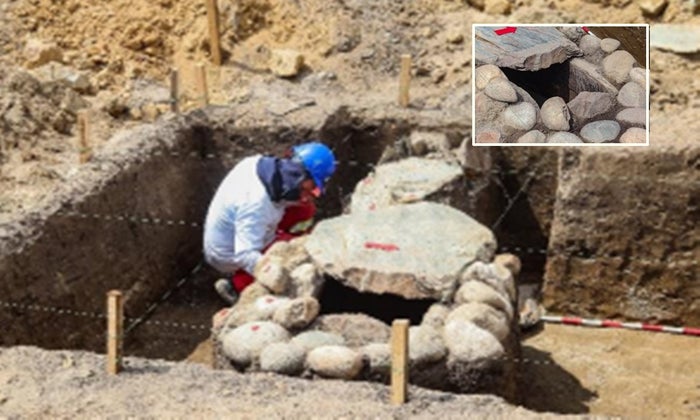 El hallazgo se encontró a 70 cm del nivel del suelo cuando la retroexcavadora movió una gran laja de piedra. Esta resultó ser la tapa de una estructura funeraria de tipo megalítico (en roca). Posteriormente, a una distancia de 20 metros, se encontró otra estructura del mismo tipo.