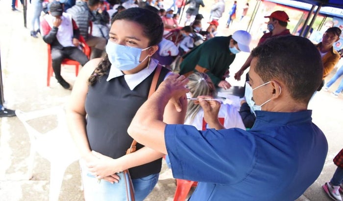 Cerca de 750 dosis de vacunas contra el Covid19 se aplicaron este domingo en la jornada masiva coordinada por la Secretaría de Salud en las instalaciones de la nueva plaza de mercado del barrio El Salado.